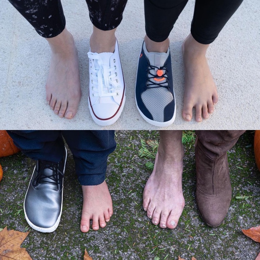 足先の幅が広く、ソールがつま先とかかとで高さが変わらない設計のシューズがベアフット(裸足の)シューズと呼ばれている。