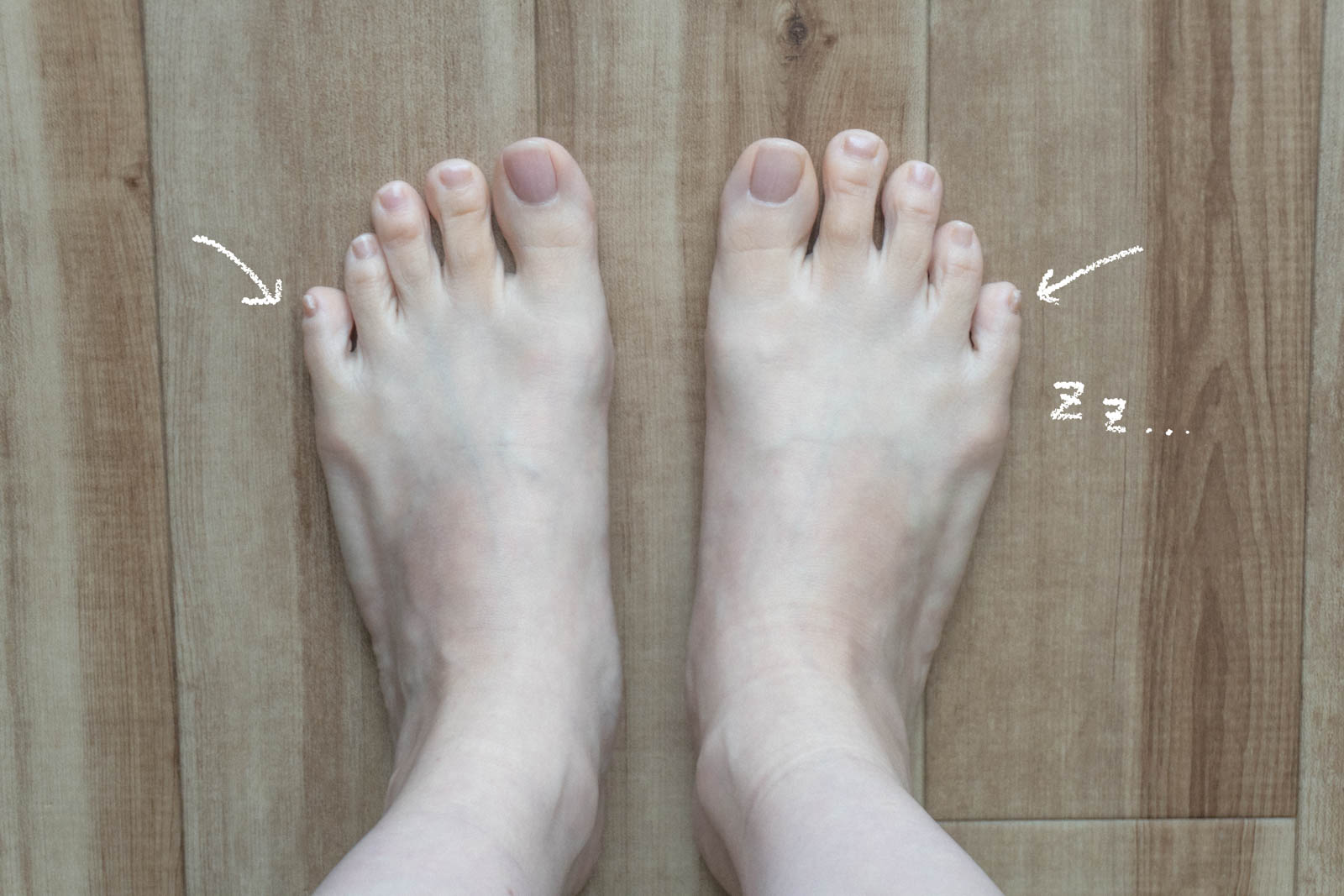 思い当たる点があって、私は足の小指が横に倒れたようになっている「寝指」だった。