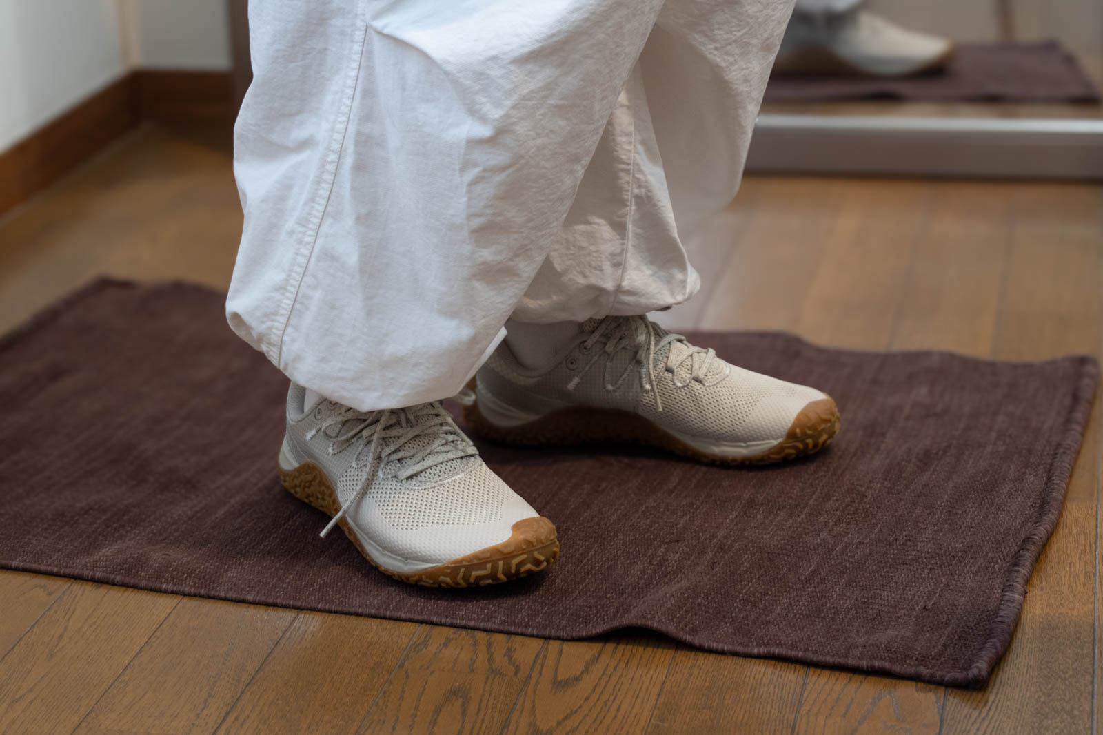 最初に買ったベアフットシューズで、ジム用の室内履きにしている。ずいぶん昔好んで日常的に履いていたハワイアナスのビーチサンダルやヒールのないレペットのバレエシューズに似た履き心地で、個人的に新鮮味は薄かった。靴としてのクオリティは価格相応で、細かく見るとチープだし白い靴下を履くとほんのり色落ちする。特筆すべき機能や性能も特にない…けどベアフットシューズを求める人は機能や性能は足にあることを望むので、街歩きのベアフットシューズとしてなら必要十分だと思う。簡素ゆえに履きやすい。